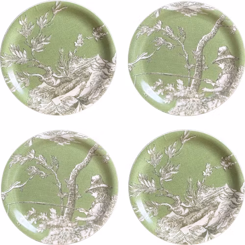 Storlek 11cm ØVåra egna coaster med Toile de jouy mönster försedda med tyg.
