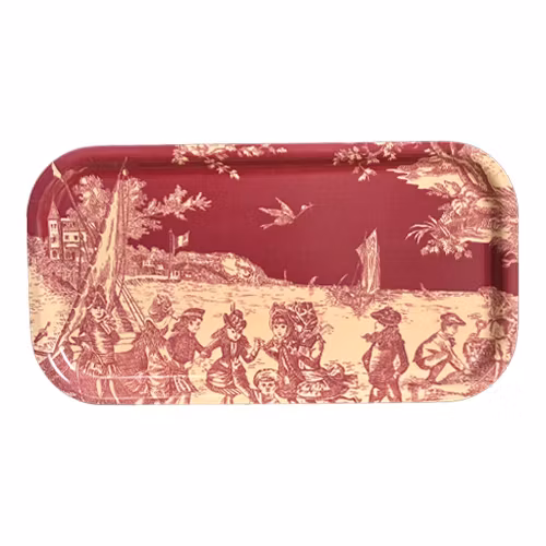 Våra egna brickor med Toile de jouy mönster försedda med tyg.