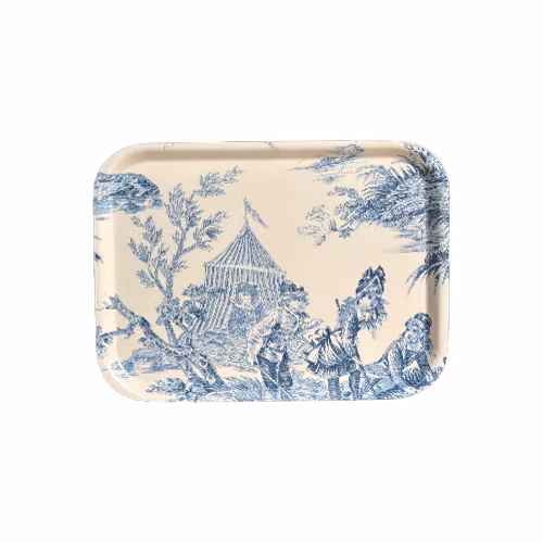 Tyget ger ytan en tydlig textil struktur och varje produkt blir unik eftersom mönstrets placering varierar. Brickan består av flera lager björkfanér, tyg och melamin vilka läggs samman för hand och pressas samman under hög värme och tryck. Melaminet gör ytan extra tålig att man till och med kan diska brickan i diskmaskin. Ett genuint svenskt hantverk.Svenskt samarbete med Åry Trays i Nybro.