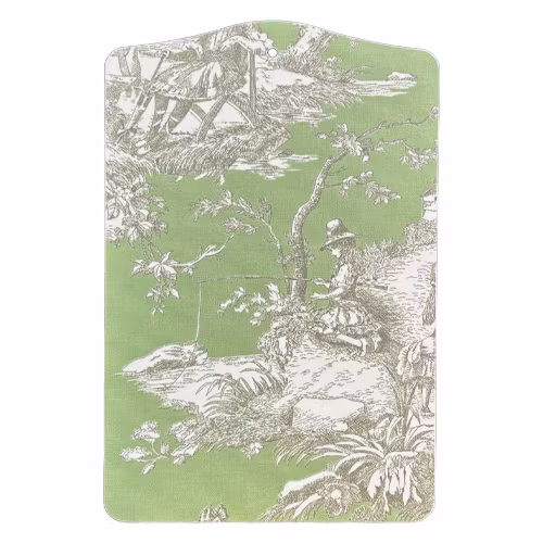 Våra egna skärbrädor med Toile de jouy mönster försedda med tyg.